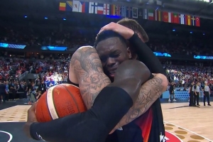 比賽結(jié)束后,德國(guó)隊(duì)核心控衛(wèi)施羅德和隊(duì)友緊緊相擁,喜極而泣。