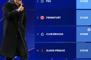 體育資訊9月16日訊 本賽季歐冠即將打響,德轉也根據(jù)聯(lián)賽階段對手平均身價盤點了各球隊賽程難易程度,其中巴黎對手的平均身價最高,具體如下: