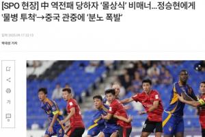 體育資訊09月17日訊 亞冠精英聯(lián)賽東亞區(qū)第1輪,成都蓉城客場(chǎng)1-2不敵蔚山HD,賽后韓媒spotv聲稱,有中國客場(chǎng)球迷朝韓國球員鄭升炫投擲水瓶。