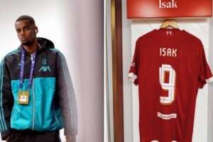 利物浦官方曬出伊薩克伊薩克神情嚴(yán)肅的照片,同時也曬出了瑞典前鋒在更衣室里的球衣照片對本場比賽進(jìn)行預(yù)熱。