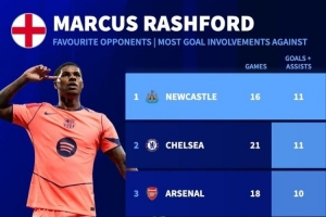 體育資訊9月19日訊 巴薩在本輪歐冠焦點(diǎn)戰(zhàn)2-1力克紐卡斯?fàn)?,拉什福德雙響建功。數(shù)據(jù)統(tǒng)計(jì)顯示,紐卡也是拉什福德生涯進(jìn)球最多的對(duì)手之一。