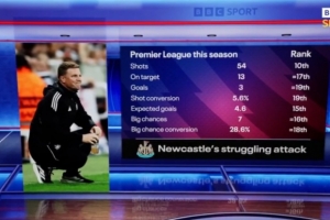 體育資訊9月22日訊 英超第5輪比賽,紐卡客場0-0戰(zhàn)平伯恩茅斯。據(jù)BBC統(tǒng)計(jì),紐卡本賽季多項(xiàng)進(jìn)攻數(shù)據(jù)排名英超后幾位。