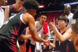 開拓者的夏季聯(lián)賽第一場,楊瀚森驚艷了全世界。不過在第三節(jié)節(jié)末,當(dāng)楊瀚森張開雙手要球,隊友DJ-卡爾頓卻完全無視,在瘋狂運球之后高難度強投——皮球砸筐而出。