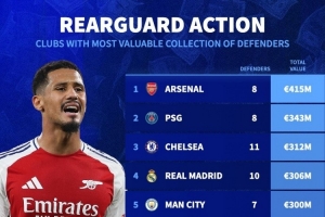 體育資訊9月24日訊 德國轉會市場統(tǒng)計了各隊陣容中后衛(wèi)球員的總身價,并列出榜單,阿森納4.15億歐居首,巴黎、切爾西二三位。