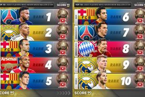 體育資訊09月25日訊 外媒Score 90排無(wú)金球球員TOP10,內(nèi)馬爾居首,姆巴佩第二,伊涅斯塔第三。