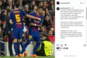 體育資訊9月27日訊 布斯克茨宣布在本賽季結(jié)束后退役,前巴薩隊(duì)友保利尼奧社媒發(fā)文致敬。