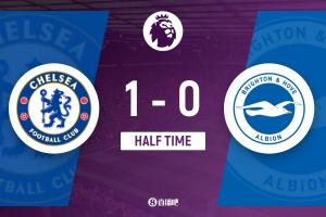 上半場(chǎng)傷停補(bǔ)時(shí)2分鐘,半場(chǎng)結(jié)束,切爾西暫1-0布萊頓。