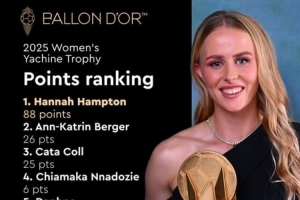 體育資訊9月28日訊 《法國足球》公布了2025年首屆女足雅辛獎的投票結(jié)果,英格蘭國家隊兼切爾西門將漢娜-漢普頓以壓倒性優(yōu)勢歷史性地奪得該獎項。