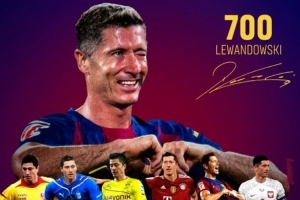 體育資訊9月29日訊 西甲第7輪比賽,巴薩在主場以2-1的比分逆轉戰(zhàn)勝皇家社會,比賽第58分鐘亞馬爾傳中助攻,萊萬頭球破門。值得一提的是,這也是萊萬在職業(yè)生涯的第700球。