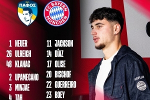 體育資訊9月29日訊 北京時(shí)間10月1日凌晨3:00,歐冠聯(lián)賽階段第2輪,拜仁將客戰(zhàn)帕福斯。今日,拜仁官方公布了本場(chǎng)比賽球隊(duì)大名單,凱恩領(lǐng)銜鋒線,比朔夫、博伊和格雷羅在列。