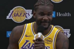 體育資訊09月30日訊 今天,湖人新援中鋒艾頓參加了球隊(duì)媒體日活動(dòng)。