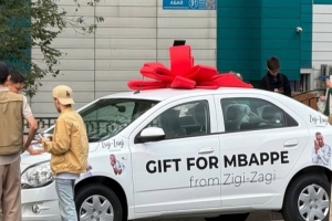 照片中阿拉木圖街頭??恐惠v噴有姆巴佩涂鴉的汽車,唐納德-赫伊森也將這張照片@了姆巴佩,并附上4個(gè)“笑哭”表情。