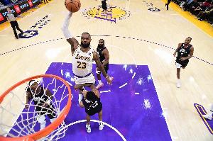 主持人邀請詹姆斯對自己湖人生涯的幾大隔扣打分(10分制)。