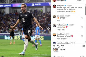 賽后凱恩也在個人社媒曬出慶祝進(jìn)球照片,配文寫道:“精彩的夜晚,球隊勢頭不錯,讓我們繼續(xù)延續(xù)下去!”