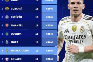 體育資訊10月1日訊 德轉(zhuǎn)更新世界U18球員身價榜,亞馬爾2億歐高居榜首。