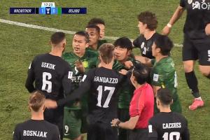 第17分鐘,池忠國飛鏟放倒對(duì)手,雙方隨后爆發(fā)沖突,沖突過后裁判未出牌。