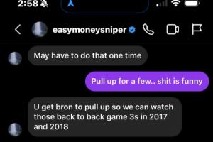 體育資訊10月03日訊 詹姆斯密友@CuffsTheLegend近日在推特上曝光了他與杜蘭特的一段私信,內(nèi)容涉及詹姆斯。