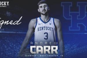安德魯-卡爾出生于2002年2月1日,身高2米11,司職內(nèi)線。前兩賽季效力于特拉華大學(xué),大三賽季轉(zhuǎn)校至維克森林大學(xué),大五賽季轉(zhuǎn)校至肯塔基大學(xué)。