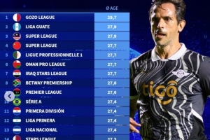 11、巴拉圭聯(lián)賽27.4歲