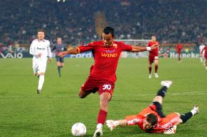 我總是對大家說,我在羅馬還做過很多其他美妙的事情,哈哈。當(dāng)時卡薩諾主罰任意球,我在前點找到一個空檔,他的傳球不是很好,是個半高球,我當(dāng)時唯一能做的動作就是用腳后跟射門。我看了這個進(jìn)球視頻無數(shù)次,你會發(fā)現(xiàn)埃默森也做了和我一樣的動作,只是我的運氣更好一些,球進(jìn)了。這不是事先安排的戰(zhàn)術(shù),那一刻我只能用腳后跟射門。而在三個月后的訓(xùn)練中,我又一次接卡薩諾的任意球打進(jìn)了一模一樣的進(jìn)球。