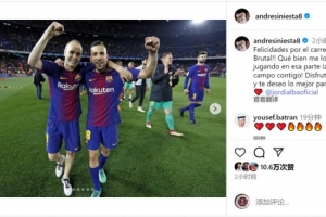 體育資訊10月8日訊 阿爾巴將在本賽季結(jié)束后退役,老隊(duì)友伊涅斯塔社媒發(fā)文祝福。