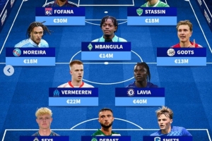 中場:費(fèi)爾梅倫(馬賽,2200萬歐)、拉維亞(切爾西,4000萬歐)、迭戈-莫雷拉(斯特拉斯堡,1800萬歐)、姆班古拉(不萊梅,1400萬歐)、米卡-霍茨(阿賈克斯,1300萬歐)