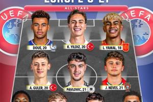 體育資訊10月13日訊 Score 90評選了歐洲U21年齡段的全明星陣容,亞馬爾、若昂-內(nèi)維斯領銜,其中西班牙三人,土耳其、法國、英格蘭各兩人,葡萄牙、德國各一人。