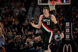 開拓者首發(fā)中鋒克林根首節(jié)統治禁區(qū),他7投4中,三分1中1,罰球1中0,得到9分8籃板(5前場板)1搶斷,正負值+7。
