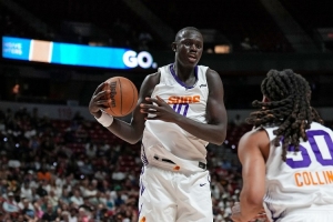 本場比賽,太陽的10號秀馬盧阿奇投籃10中8,三分球1中1,高效拿下17分8籃板2助攻3搶斷2蓋帽的全面數(shù)據(jù)。