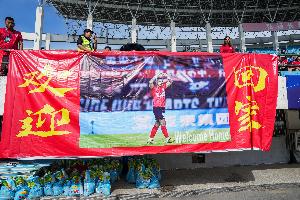 今天長春體育中心體育場的看臺上一抹紅色為故人綻放,橫幅上萊昂納多的照片和“歡迎回家”四個大字,是長春亞泰球迷在以最熾熱的方式擁抱舊將。