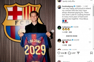體育資訊10月16日訊 巴薩官方宣布,隊內(nèi)中場德容續(xù)約至2029年,德容社媒發(fā)文慶祝。