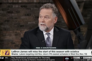據(jù)著名記者Shams報(bào)道,湖人和詹姆斯將11月中旬作為其現(xiàn)實(shí)的目標(biāo)復(fù)出日期。