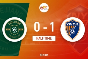 上半場補時10分鐘。半場戰(zhàn)罷,浙江隊0-1云南玉昆。