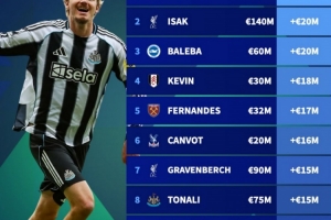 英超身價(jià)漲幅榜:沃爾特馬德+3500萬歐居首,伊薩克+2000萬歐次席