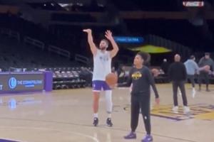 體育資訊10月18日訊 今天,湖人前鋒馬克西-克萊伯賽前在球館內(nèi)進行了三分訓(xùn)練。