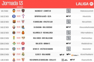 體育資訊10月20日訊 西甲官方公布第13輪比賽時(shí)間,11月22日23:15巴薩對陣畢巴,皇馬24日4點(diǎn)出戰(zhàn)。