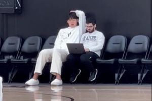 王猛配文寫道:“一段視頻證明楊瀚森的英語水平進(jìn)步速度。這是今天訓(xùn)練之后楊瀚森和助理教練在場邊一起看錄像的鏡頭。翻譯一直不在,大概持續(xù)了七八分鐘,我這只截取了一小段。全程靠自己,有說有笑,樂樂呵呵。”