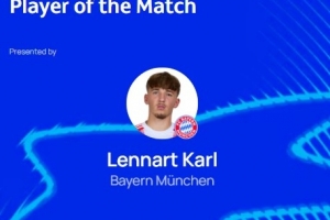 本場比賽拜仁17歲小將卡爾發(fā)揮出色,打進球隊首粒進球,賽后他也當選歐冠官方評選出的本場最佳球員。