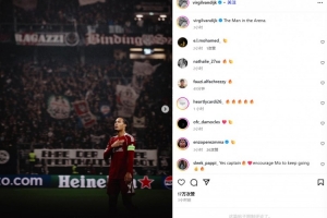 范戴克在賽后通過(guò)社媒曬出自己賽后向球迷們致意的謝場(chǎng)照,并配文:“球場(chǎng)中的男人。”