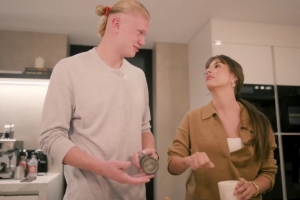 和女友一起烹飪時(shí),場(chǎng)上兇猛的哈蘭德展現(xiàn)出了溫柔的一面。兩人是小時(shí)候在挪威Bryne當(dāng)?shù)厍嘤?xùn)學(xué)院效力時(shí)認(rèn)識(shí)的,哈蘭德形容伊莎貝爾的球風(fēng)像吉格斯,有著同樣犀利的左路突破和精準(zhǔn)傳中。兩人互相調(diào)侃時(shí),哈蘭德顯得很開(kāi)心。伊莎貝爾嘲笑他缺乏盤(pán)帶能力,并說(shuō)她最初喜歡的是他的好朋友。