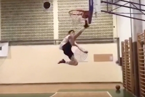 舍什科說:“是的,那確實(shí)是我。挺搞笑的,因?yàn)楫?dāng)時(shí)球卡在籃框,我也不知道為什么就想用腳去把它夠下來。這可不是每個(gè)人都能做到的?!?/p>