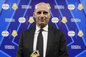 體育資訊10月25日訊 意甲官方曬照,米蘭主帥阿萊格里在米蘭對陣比薩賽前領(lǐng)取了九月最佳教練獎杯。
