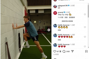 厄德高在10月4日對陣西漢姆的比賽中膝蓋內側副韌帶受傷,他在社交媒體上曬出康復訓練的照片,這位阿森納中場正在努力恢復,希望盡快復出幫助球隊。