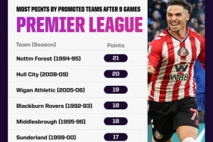 體育資訊10月26日訊 桑德蘭在本輪英超焦點戰(zhàn)2-1力克切爾西,延續(xù)了本賽季的出色表現(xiàn)。數(shù)據(jù)統(tǒng)計顯示,他們在英超歷史升班馬中都位列前茅。