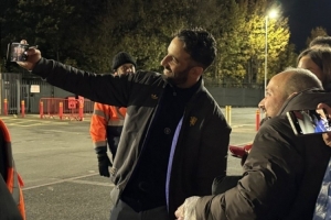此前備受詬病的主帥阿莫林也在賽后獲得追捧,在比賽結(jié)束兩小時后仍然在為曼聯(lián)球迷們簽名合影,他在拿起手機自拍時也露出了開心的笑容。