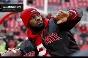 體育資訊10月27日訊 球鞋媒體Soleretriever報道,詹姆斯和Nike為家鄉(xiāng)俄亥俄州立大學橄欖球隊制作了橄欖球版本的特殊鞋款。