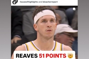 此役,里夫斯出戰(zhàn)39分鐘,22投12中,三分球10中6,22罰21中爆砍生涯新高的51分外加11板9助2斷,正負(fù)值高達(dá)+22。
