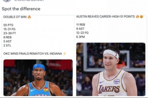 賽后美媒露天看臺曬出了里夫斯的數(shù)據(jù)但沒寫上罰球數(shù)據(jù),雷霆隨隊記者Clemente Almanza曬出了此前亞歷山大對步行者砍下55分的比賽數(shù)據(jù)(有寫上罰球罰球),改記者寫道:“發(fā)現(xiàn)了區(qū)別?!?/p>