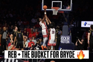 詹姆斯轉(zhuǎn)發(fā)了亞利桑那大學(xué)男籃官方賬號(hào)發(fā)布的他的小兒子布萊斯在比賽中完成補(bǔ)籃的照片,并配文道:“耶——6號(hào)!”