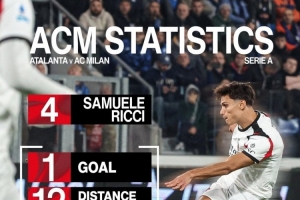 米蘭官方社媒曬出里奇本場(chǎng)比賽的數(shù)據(jù),他出場(chǎng)97分鐘打進(jìn)1球,跑動(dòng)距離12公里,傳球成功率97%,完成4次解圍。